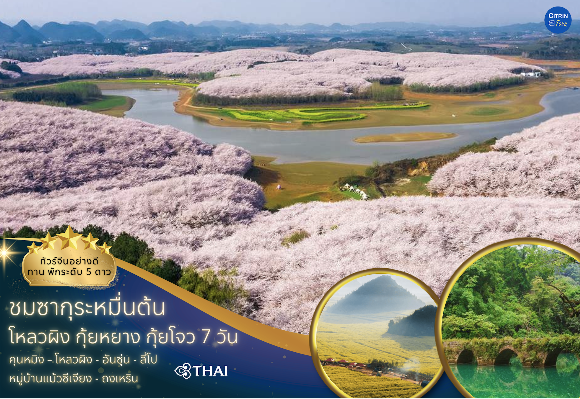 ทัวร์โหลวผิง กุ้ยหยาง กุ้ยโจว 7 วัน : ชมดอกซากุระบานนับหมื่นต้นจุใจ และชมทุ่งดอกคาโนล่าสีทองเหลืองอร่ามดุจพรมทอง ในช่วงที่สวยที่สุดสวยที่สุด มีครั้งเดียวในรอบปี กินดี อยู่ดี ไม่เสียเวลา ไม่ลงร้านชอป
