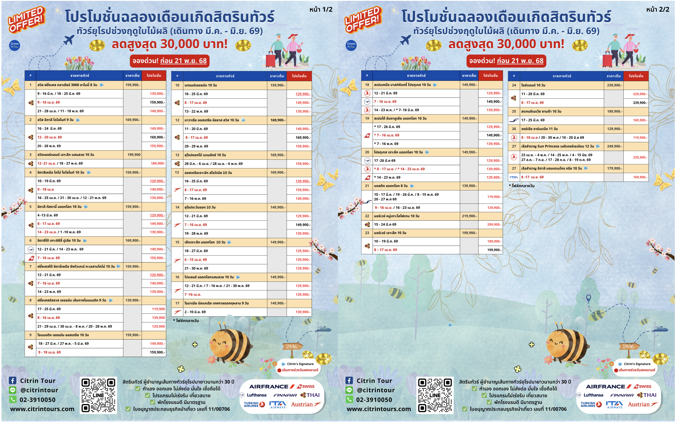 ทัวร์ยุโรปใบไม้ผลิ มี.ค. - มิ.ย. 69