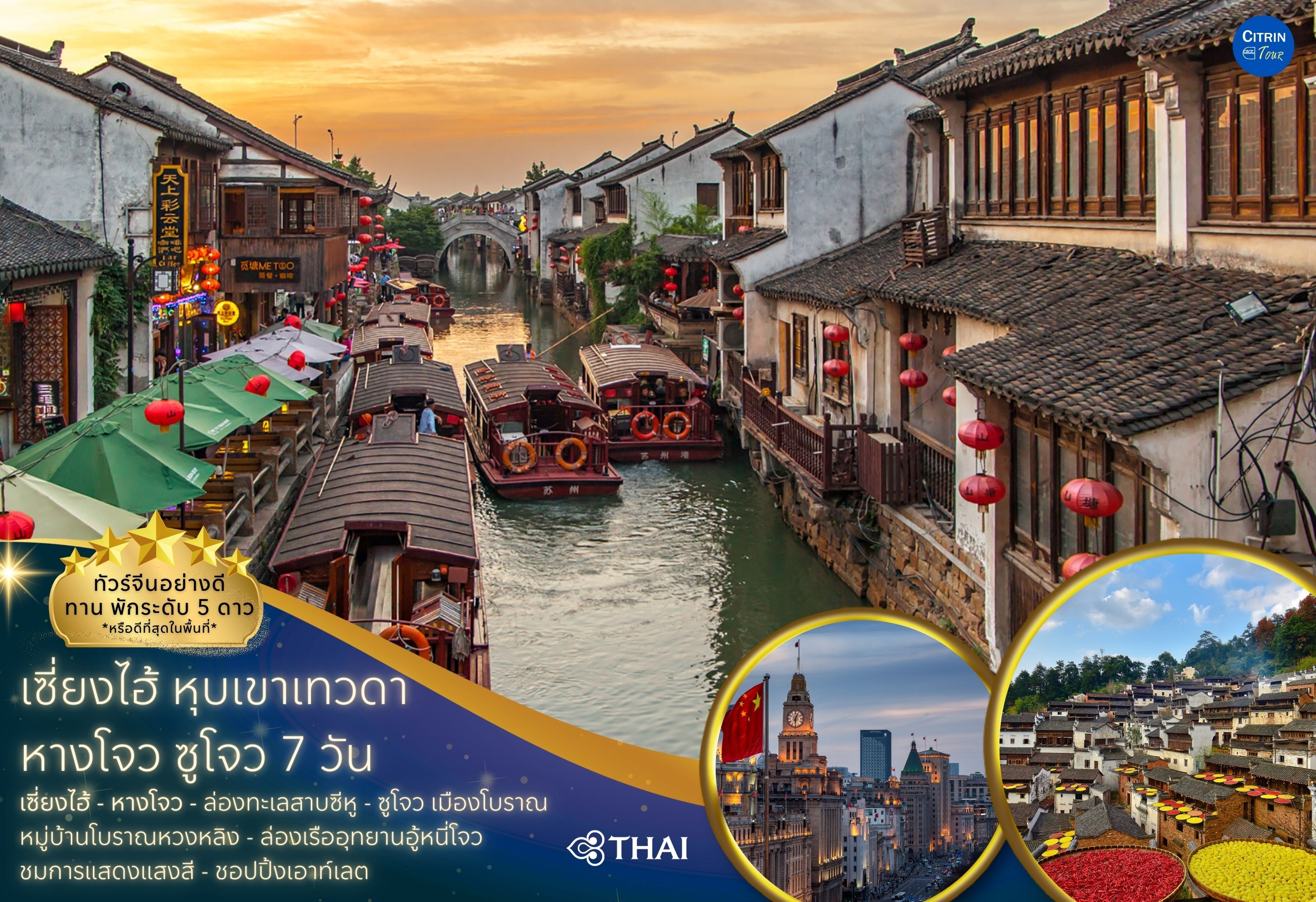 เซี่ยงไฮ้ - หางโจว - ล่องทะเลสาบซีหู - ซูโจวเมืองโบราณ - ซ่างเหรา - หุบเขาเทวดา - หมู่บ้านโบราณหวงหลิง - ล่องเรืออุทยานอู้หนี่โจว - ชมการแสดงแสงสี - ชอปปิ้งเอาท์เลต